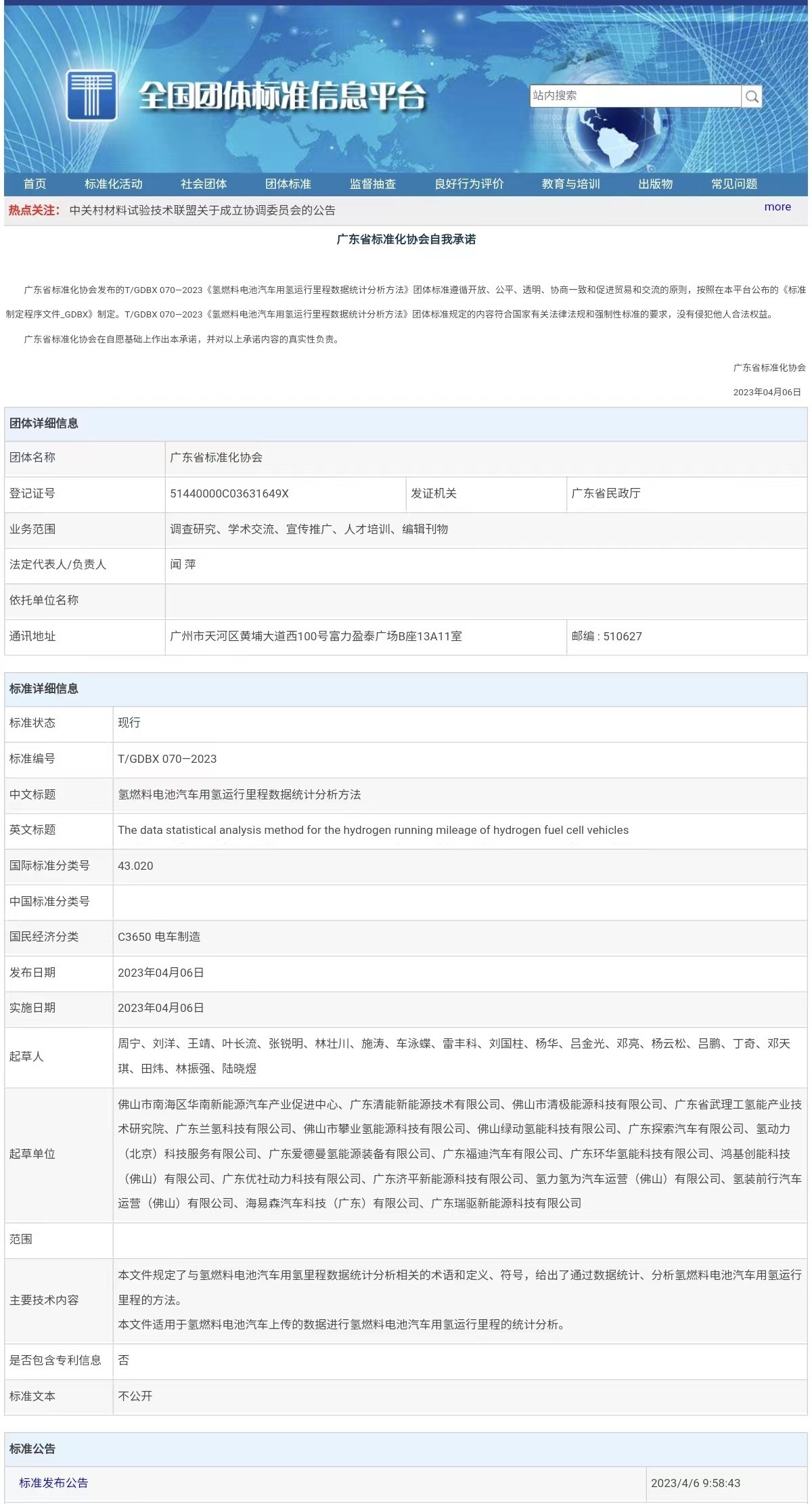 4月6日,由佛山市南海區(qū)華南新能源汽車產(chǎn)業(yè)促進(jìn)中心主導(dǎo)制定的《氫燃料電池汽車用氫運(yùn)行里程數(shù)據(jù)統(tǒng)計(jì)分析方法》(T/GDBX 070—2023)團(tuán)體標(biāo)準(zhǔn)(簡(jiǎn)稱“標(biāo)準(zhǔn)”)正式發(fā)布!