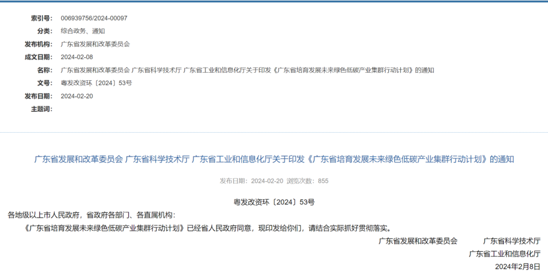 近日,廣東省發(fā)展和改革委員會(huì)、廣東省科學(xué)技術(shù)廳、廣東省工業(yè)和信息化廳聯(lián)合發(fā)布《廣東省培育發(fā)展未來綠色低碳產(chǎn)業(yè)集群行動(dòng)計(jì)劃》。