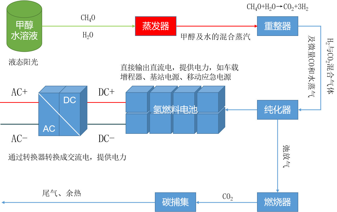 Under the current energy structure, methanol water hydrogen production + hydrogen fuel cell has the lowest emissions, and the products are only water and carbon dioxide, which is only 1/2 of the pure electric vehicle technology path.